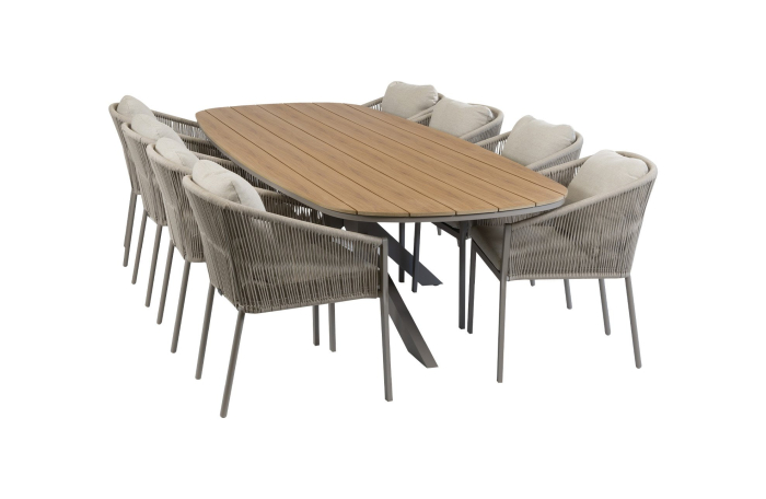 9-teiliges Garten-Set | 8 Elvira Gartenstühle | 280 cm Cadiz Gartentisch | Camel