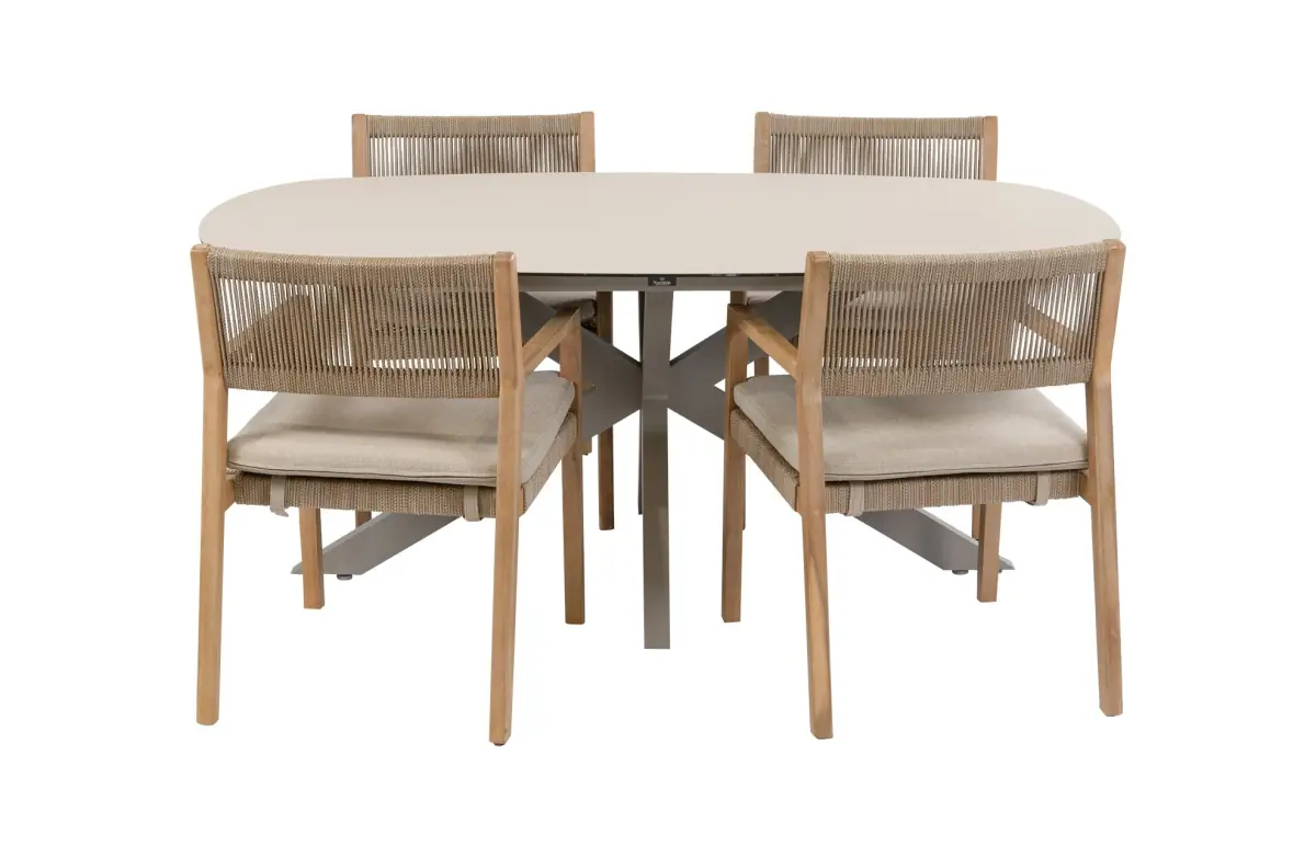 Entdecken Sie den großen, robusten Gartentisch Malaga im großen Format von 280 x 115 cm - perfekt für eine große Terrasse. Dieser Tisch kombiniert Raffinesse und Funktionalität mit einer eleganten, bootsförmigen Tischplatte, die Ihrer Terrasse einen einzigartigen Look verleiht. Die Platte ist in dem warmen Erdton Cerra Vetro gehalten und besteht aus einer Mischung aus Keramik und Glas. Dieses Material ist sowohl stilvoll als auch robust, witterungsbeständig und leicht zu pflegen.