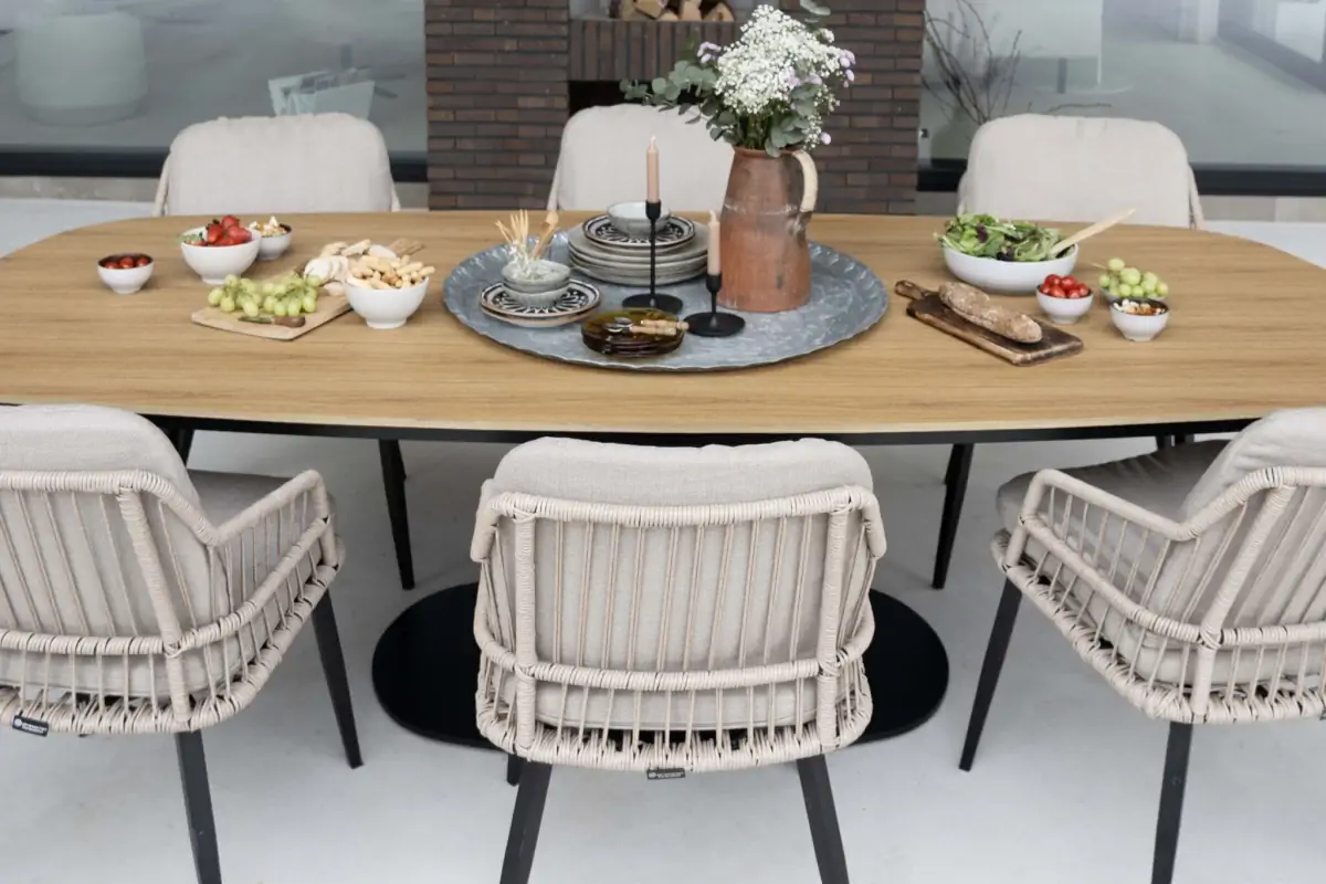 Lernen Sie unseren neuen Tower-Gartentisch in einer einzigartigen Bootsform kennen. Dieser schöne Tisch bietet einen stilvollen und modernen Look, der perfekt in eine Vielzahl von Außenumgebungen passt, vom gemütlichen Familiengarten bis zur Geschäftsterrasse.