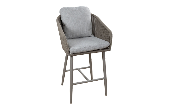 Das fein geflochtene Rope ist besonders hochwertig verarbeitet und sorgt für eine elegante Optik. Gleichzeitig bietet es ein angenehmes, stabiles Sitzgefühl. Die weichen Loungekissen in Elfenbeinfarbe bringen Wärme in das Gesamtbild und schaffen zusätzlichen Komfort. Dadurch eignet sich der Alezio hervorragend als hoher Barstuhl für den Außenbereich, zum Beispiel an einer Bartheke, einem Stehtisch oder einer hohen Gartentafel.