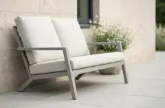 Eine 2-Sitzer-Bank wie die Bezano in Champagner-Aluminium bietet Ruhe und Komfort. Sie hat einen modernen Look und fügt sich gut in die natürlichen Farbtrends ein. Allerdings legt eine Bank oft die Anordnung fest, so verliert man an Flexibilität. Auf einem kleinen Balkon bedeutet das weniger Bewegungsfreiheit und geringere Anpassungsmöglichkeiten. Auf größeren Balkonen und Dachterrassen funktioniert das gut, auf kleineren Balkonen sollte man jedoch kritisch abwägen was einem wichtiger ist.