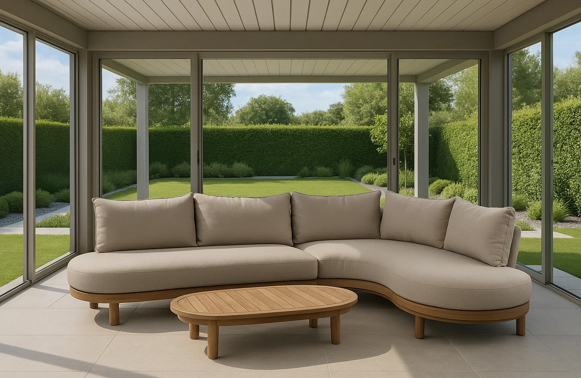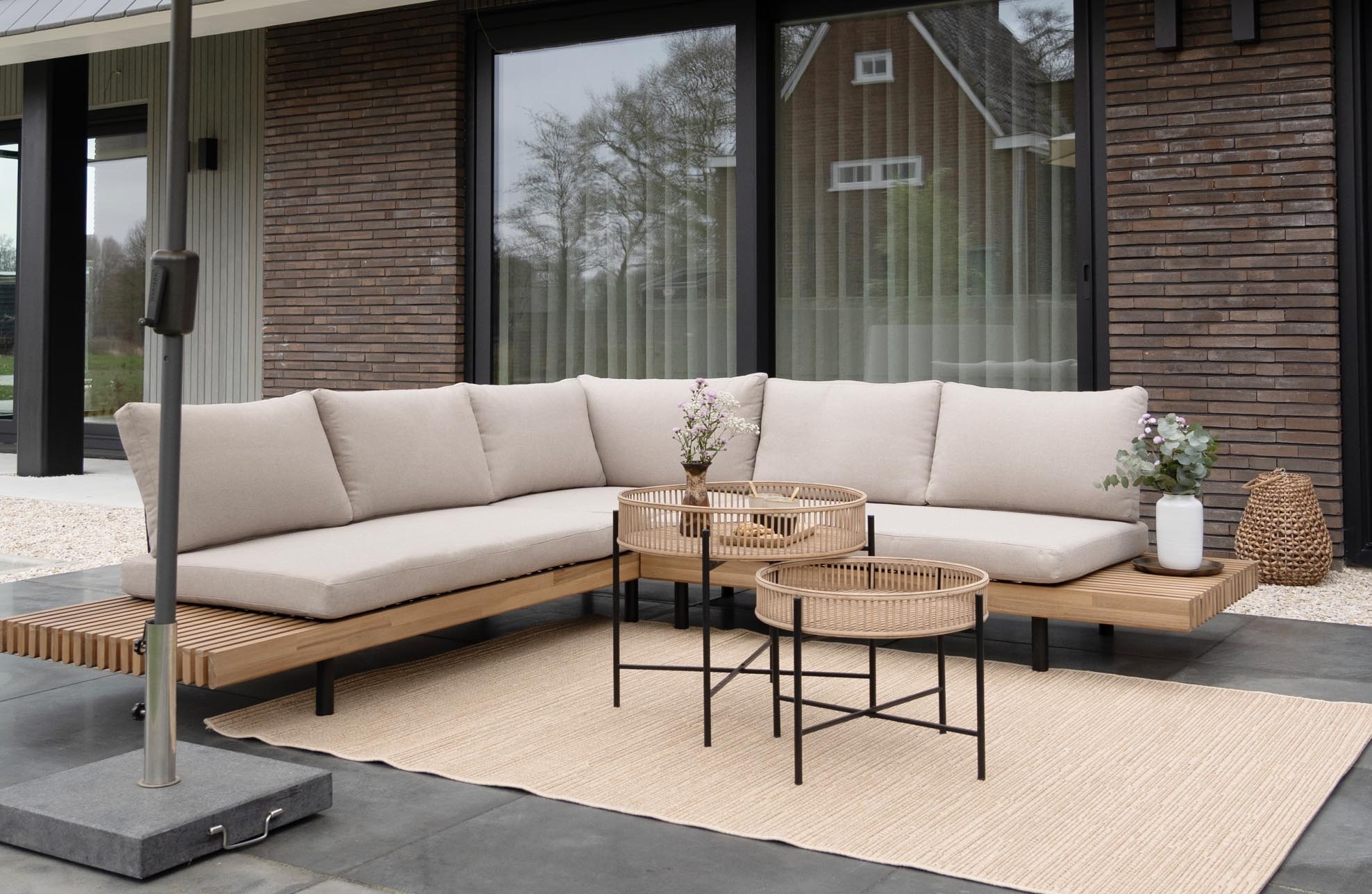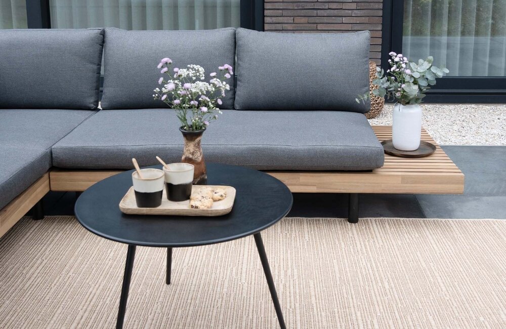 Unsere beliebte Lounge Lissabon ist wie gemacht für entspannte Abende - mit ihrer großzügigen Eckform bietet sie viel Platz zum Zurücklehnen. Gefertigt aus Akazienholz in luxuriöser Teakoptik und wahlweise mit sandfarbenen oder schwarzen Polstern, wird sie schnell zum stilvollen Highlight auf Ihrer Terrasse. Die abgerundeten Enden der Sofateile verleihen der Lounge einen modernen, organischen Charakter. Im praktischen Set mit den Beistelltischen Aiko (Bambus) oder Rafael (Aluminium) wird Lissabon zur echten Oase des Stils und Komforts.