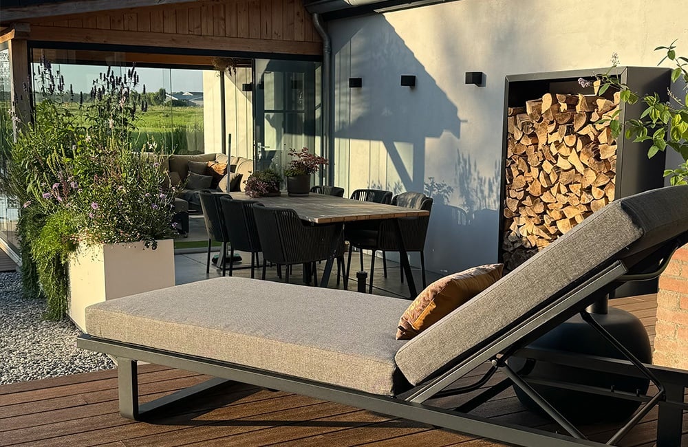 „Das Design passt exakt zu dem, was wir gesucht haben. Die Farbe harmoniert perfekt mit unserer Schiebetür und die Liegen vollenden das Gesamtbild.“