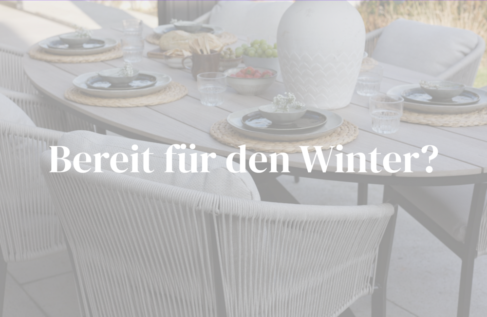 Oberflächen aus Sprühstein oder Keramik sind robust, aber empfindlich gegenüber Frost. Daher empfehlen wir, Tische mit diesen Materialien entweder trocken zu lagern oder gut mit Schutzhüllen abzudecken. Ähnliches gilt für Sitzpolster: Textilien sollten spätestens ab November trocken und luftig gelagert werden – etwa in Aufbewahrungsboxen oder im Innenraum.