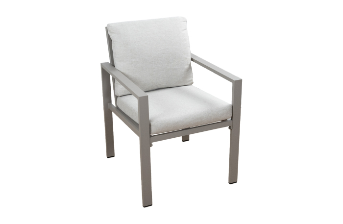 Die Kombination aus geraden Linien, modernem Aluminiumrahmen und hellen Sitzkissen verleiht dem Lumo Diningstuhl eine zeitgemäße, ruhige Ausstrahlung. Er lässt sich hervorragend mit Aluminium- oder Teak-Diningtischen kombinieren und passt perfekt zu klar strukturierten Terrassen, modernen Veranden oder minimalistischen Außenbereichen.