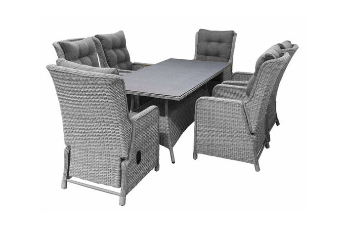 Gartenset für 6 Personen | Dublin verstellbare Gartenstühle | Dublin Tisch mit Keramikplatte 180 cm | Mystic Grau