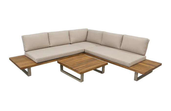 Ecklounge-Set Bastan | Sand/Sable | Akazienholz und Aluminium