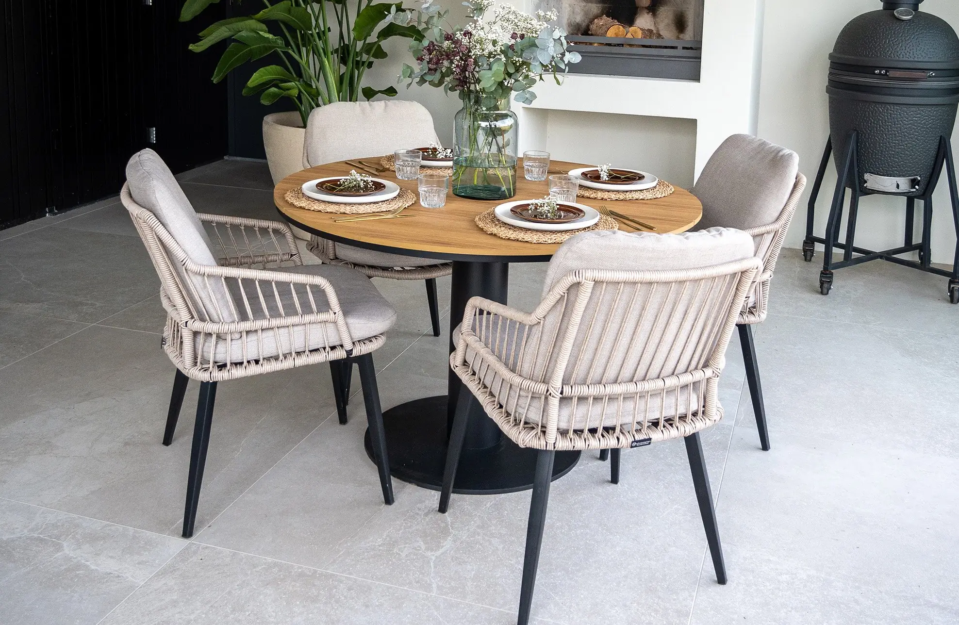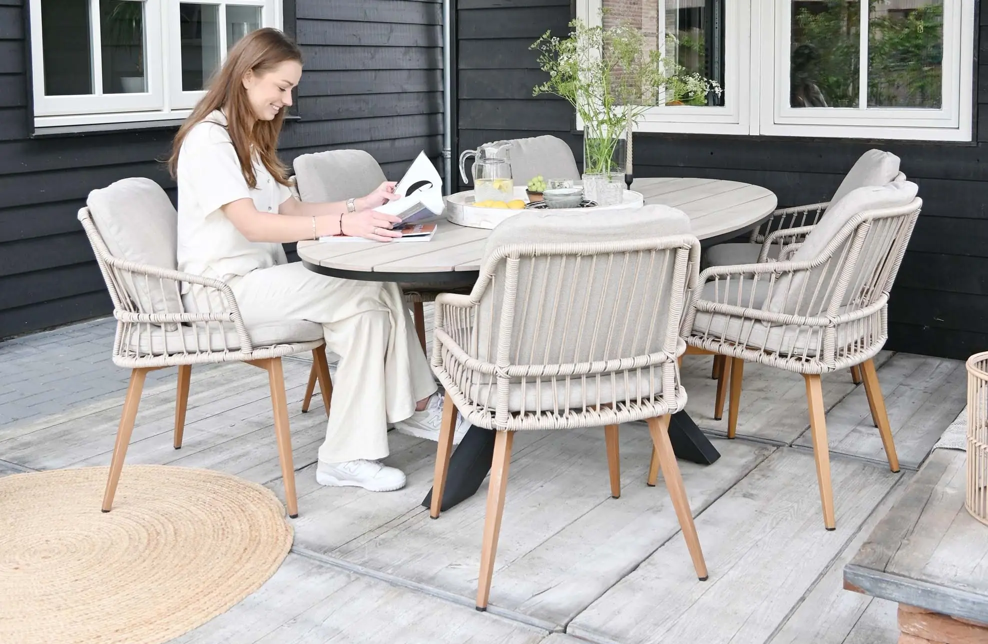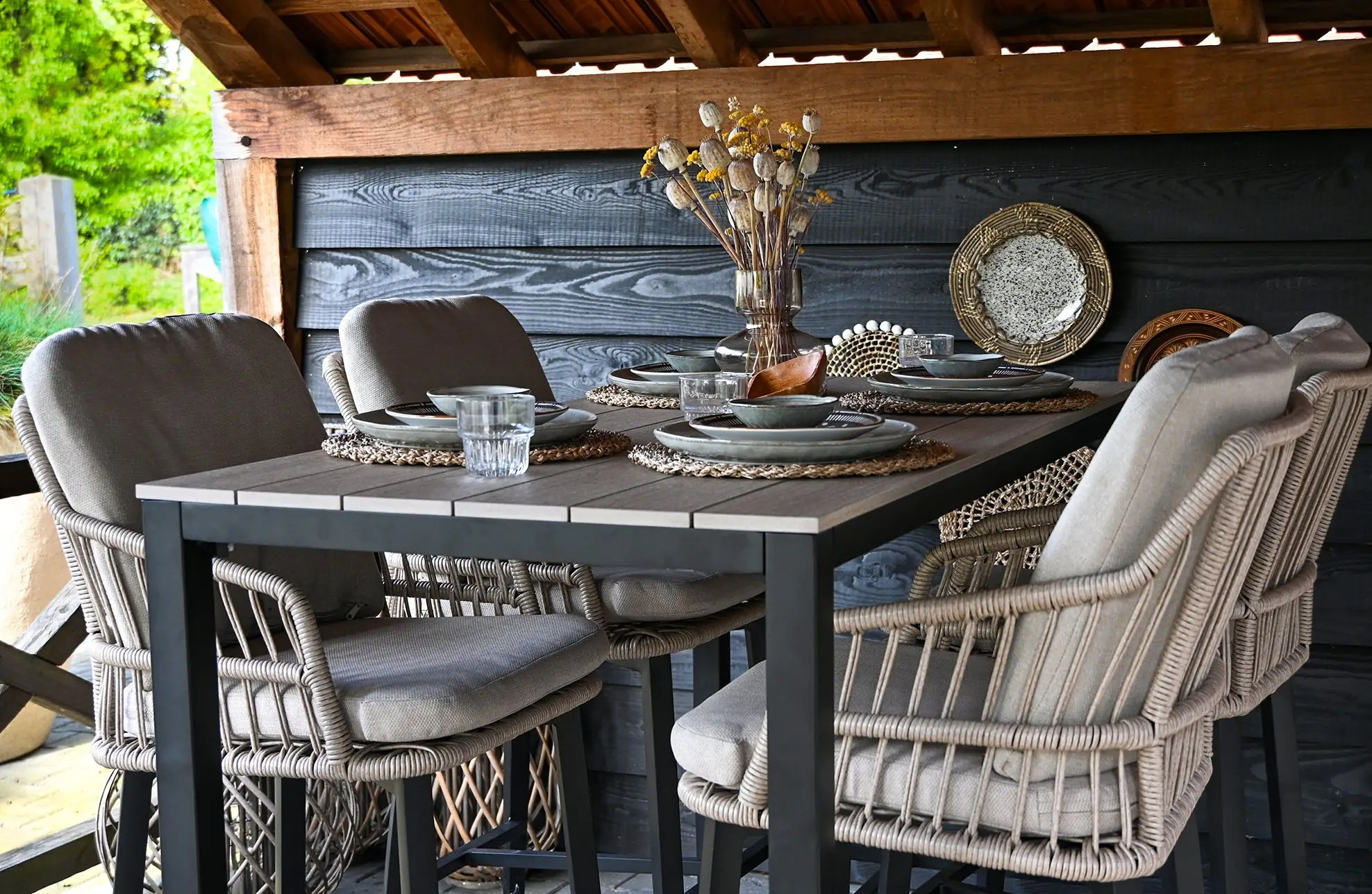 Ein Gartenmöbel-Set in Beige wirkt hell, freundlich und einladend. Es lässt kleine Terrassen größer erscheinen und verleiht großen Flächen eine ruhige Struktur. Der neutrale Farbton harmoniert mit fast jeder Umgebung und bietet einen idealen Hintergrund für Akzente wie Outdoor-Lampen, Outdoor-Teppiche oder Dekokissen.
