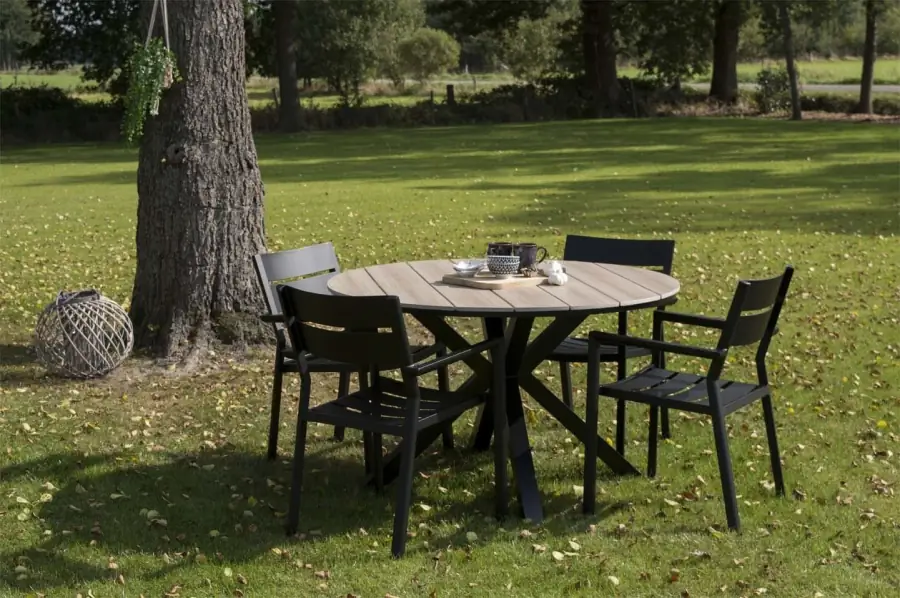 • Pollywood: ein innovatives, langlebiges Material aus recyceltem Kunststoff, das die natürliche Optik von Holz nachahmt, jedoch wetterfest, pflegeleicht und UV-beständig ist – ideal für hochwertige Gartenmöbel.