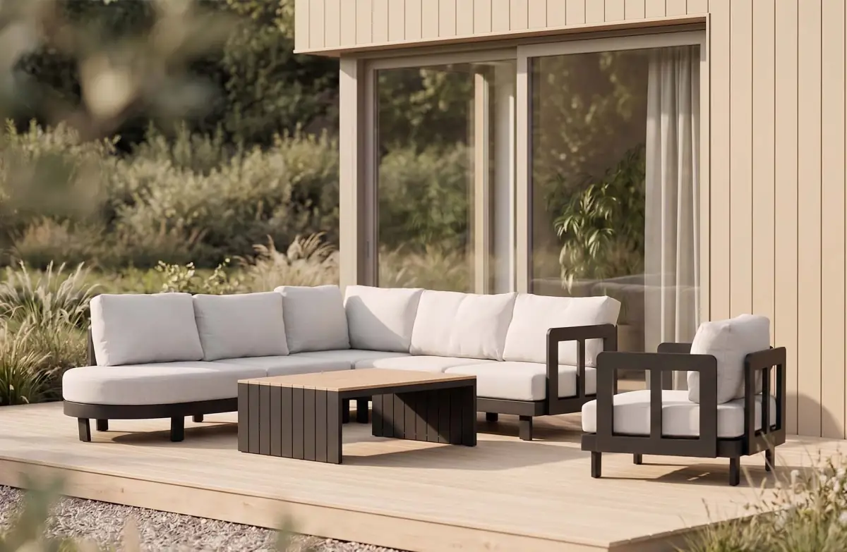 | Eigenschaften | Modular erweiterbares Design, pulverbeschichteter rostbeständiger Aluminiumrahmen, wetterbeständig, UV-beständige Oberfläche, wasserabweisende Kissen |