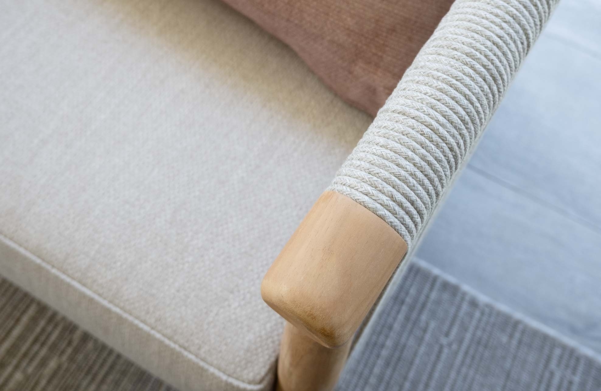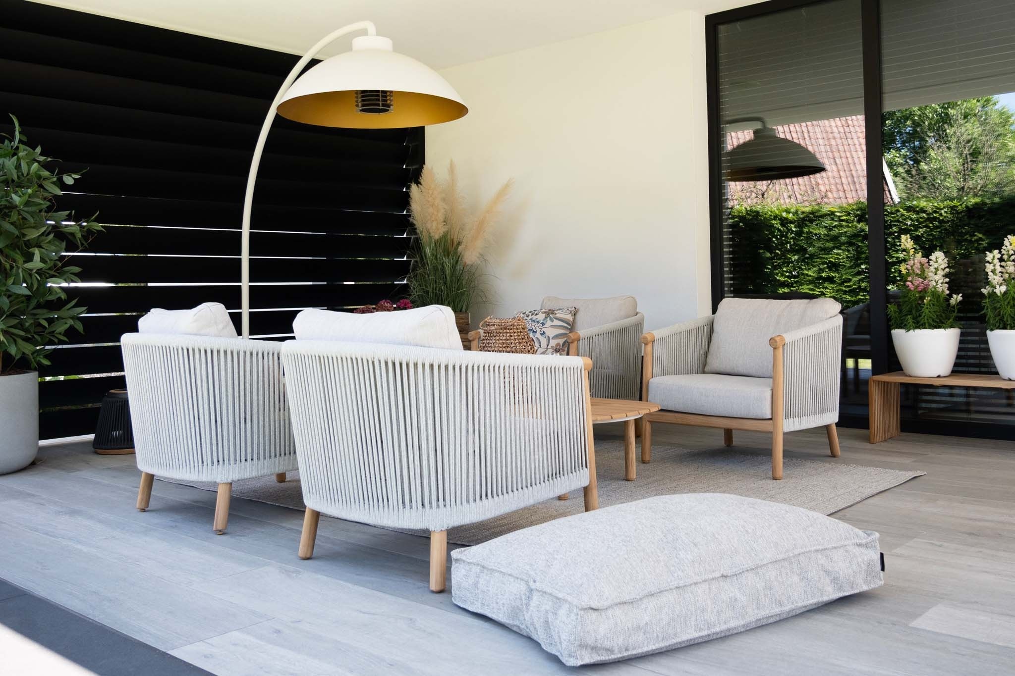 Entspannen Sie sich stilvoll mit dem Loungesessel Es Vedra, der eine perfekte Balance zwischen Komfort und modernem Design bietet. Aus robustem Teakholz gefertigt und mit einem starken, witterungsbeständigen Seil in einem hellen Grauton bespannt, bietet dieser luxuriöse Stuhl das ideale Sitzerlebnis im Freien. Das flexible Seil passt sich Ihrem Rücken an und bietet ergonomische Unterstützung und lang anhaltenden Komfort. Der Loungesessel ist mit einem weichen, wasserabweisenden Sitzkissen in der luxuriösen Farbe Creme ausgestattet. Dieses Kissen bietet nicht nur Komfort, sondern verleiht Ihrem Garten auch ein warmes, einladendes Aussehen. Bei längerem Regen empfiehlt es sich, das Kissen trocken zu lagern, damit es länger hält.