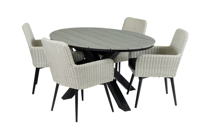5-teiliges Gartenset | 4 Pisa-Gartenstühlen | Limasol Gartentisch | 180cm | Oval