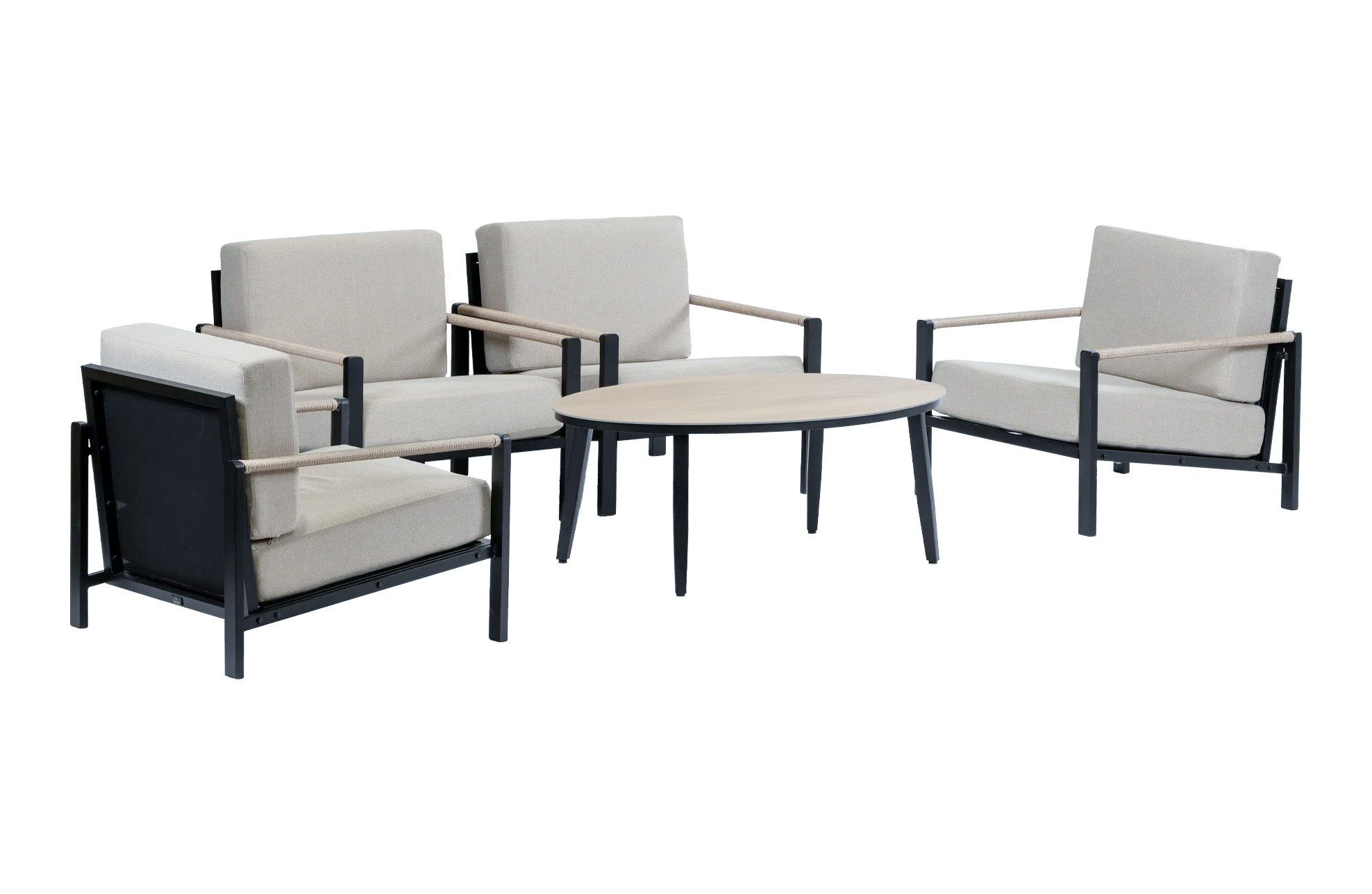 Sessel Lounge-Set | 4 Nosso Lounge-Sessel | Mykonos Beistelltisch oval (120 x 75 cm) | Wood & Sand
