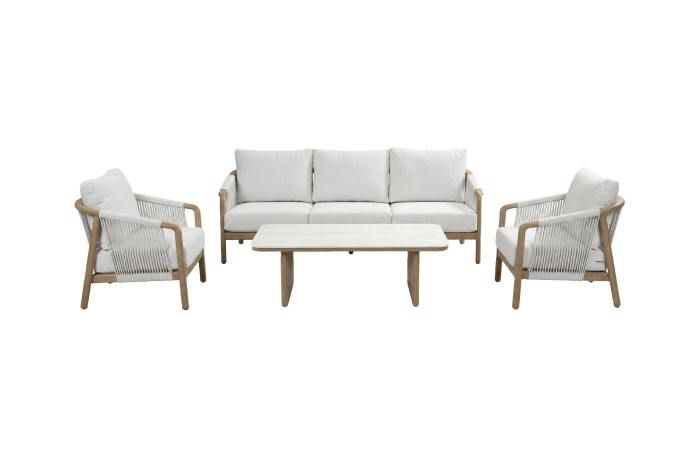 Sessel-Sofa Loungeset Murcia | 4-Teilig | Wood | Calm Naturel/Snow Sand | Aluminium und Rope