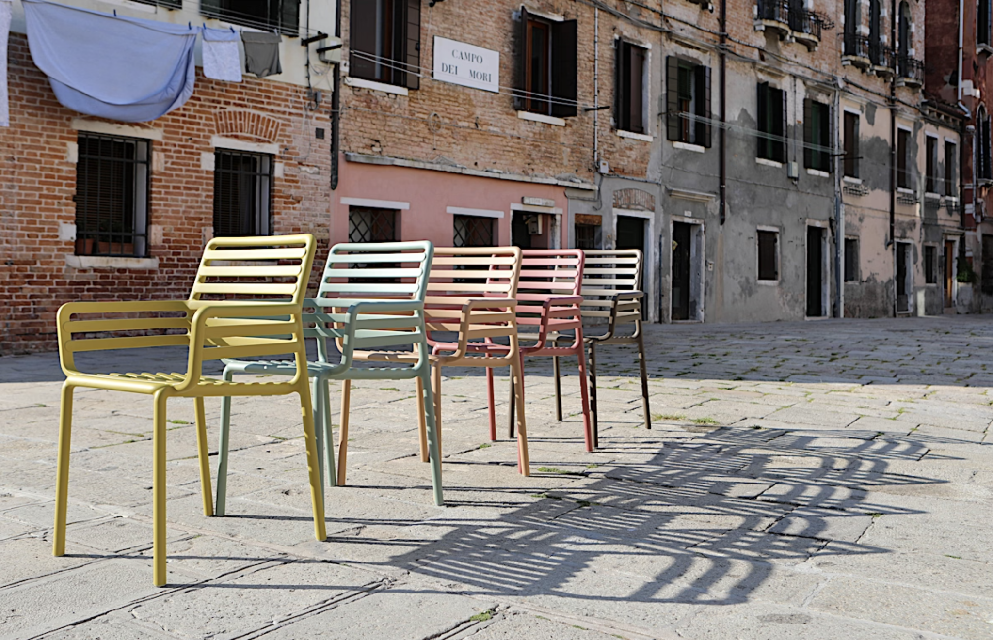 Der stapelbare Gartenstuhl Doga der italienischen Marke Nardi ist aus hochwertigem Glasfaserharz gefertigt und verkörpert Langlebigkeit und Komfort. Dank dieser Konstruktion ist der Stuhl pflegeleicht, einfach zu reinigen, leicht im Gewicht und sogar recycelbar. Eine UV-beständige Beschichtung bewahrt die Farbintegrität, während das moderne, minimalistische Design, entworfen von Raffaello Galiotto, mit seinen horizontalen Lamellen einen zeitgenössischen Akzent setzt.
