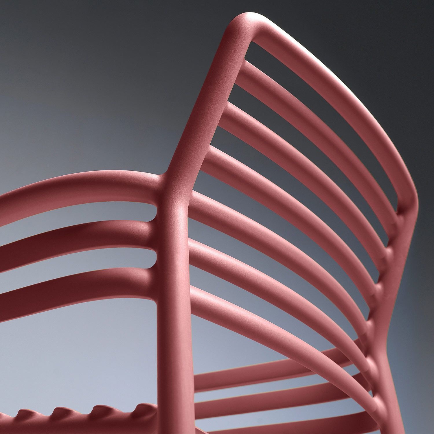 Der stapelbare Gartenstuhl Doga der italienischen Marke Nardi ist aus hochwertigem Glasfaserharz gefertigt und verkörpert Langlebigkeit und Komfort. Dank dieser Konstruktion ist der Stuhl pflegeleicht, einfach zu reinigen, leicht im Gewicht und sogar recycelbar. Eine UV-beständige Beschichtung bewahrt die Farbintegrität, während das moderne, minimalistische Design, entworfen von Raffaello Galiotto, mit seinen horizontalen Lamellen einen zeitgenössischen Akzent setzt.