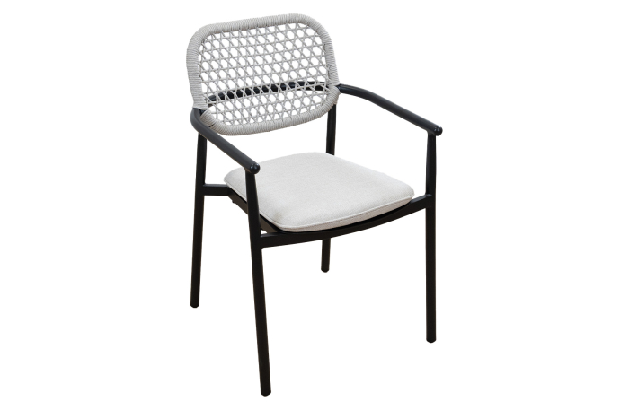 Stapelbarer Gartenstuhl Lecce | Beige | Schwarz/Mokka | Aluminium und Rope