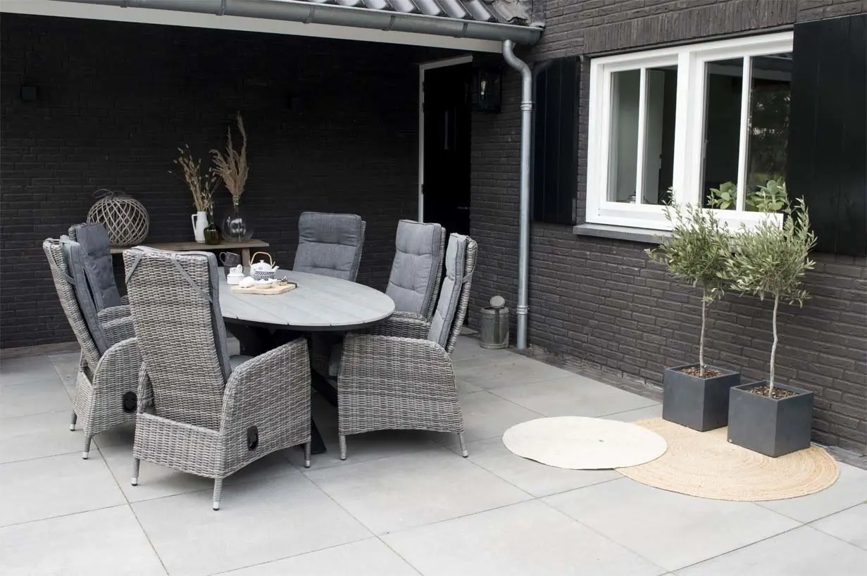Gartentisch Dublin 145 x 85 cm | Aschgrau | Polyrattan & Keramik